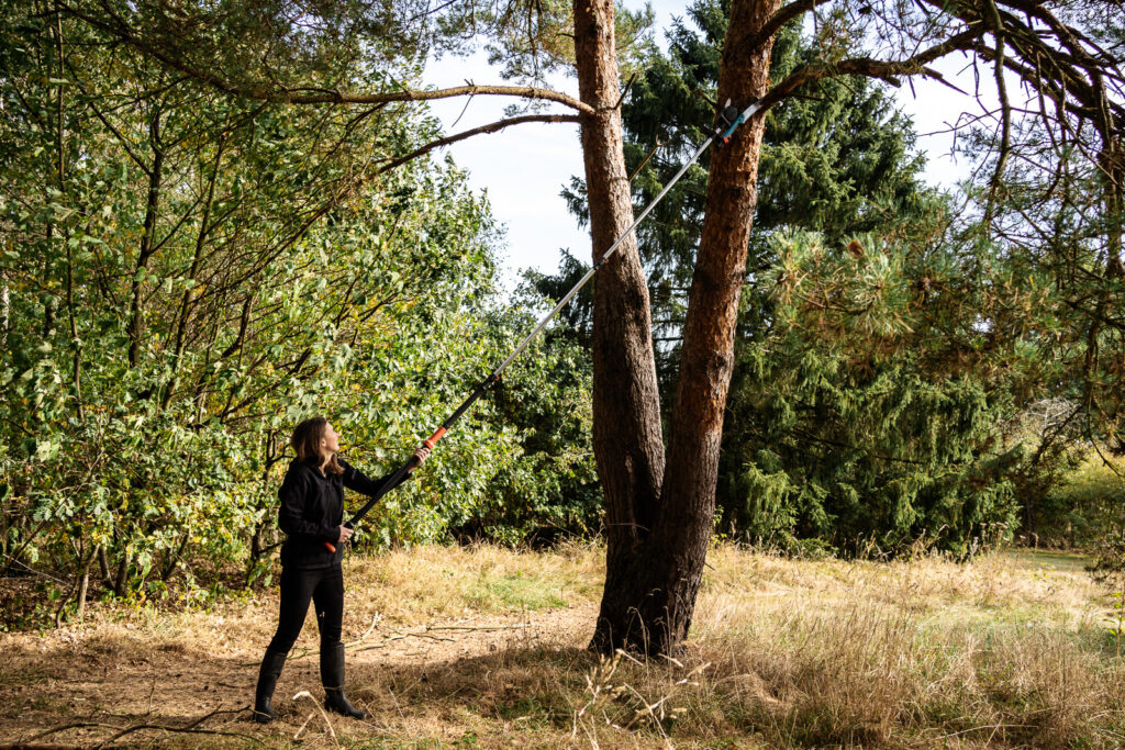 Doch zwischen Wissen und Handeln steht oft die Leiter. Das Schleppen. Das Balancieren. Der Werkzeugwechsel zwischen Säge und Schere. Und am Ende bleibt der Schnitt liegen.
